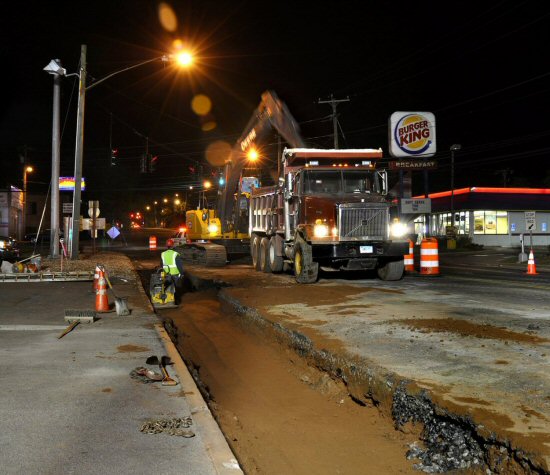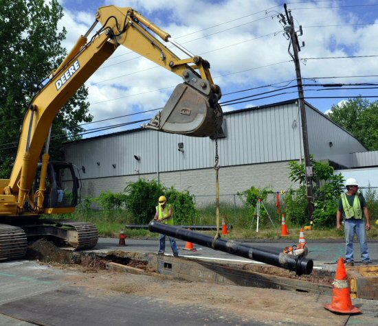 This $7.5 million project included installation of a new waste water pump station system on Airport Road in Hartford and 3100 LF of new 10" ductile iron force main, abandonment of the existing pumping station and force main, permanent pavement repair and milling and overlay. Additionally, work on Wethersfield Avenue included connecting to an existing 54" sanitary sewer, 1400 LF of new 15" PVC sewer in a 15' deep steel sheeted trench, separation of existing combined sewer laterals and replacement with 1500 LF of 6" sanitary sewer and 6" storm drainage connections, cleaning and lining of 1600 LF of existing 15" sanitary sewer, replacement of 1250 LF of 16" ductile iron water main, permanent pavement and milling and paving of all work areas.